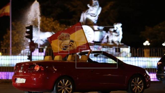 La mayoría de los aficionados del Real Madrid hicieron caso a la petición del Ayuntamiento de la capital de España y del conjunto blanco de no acudir, como acostumbran, a la fuente de Cibeles a celebrar el título de Liga conseguido por los de Zinedine Zidane y solo algunos curiosos se acercaron a pie y la mayoría pasaron con sus coches, tocando el claxon en señal de alegría.
