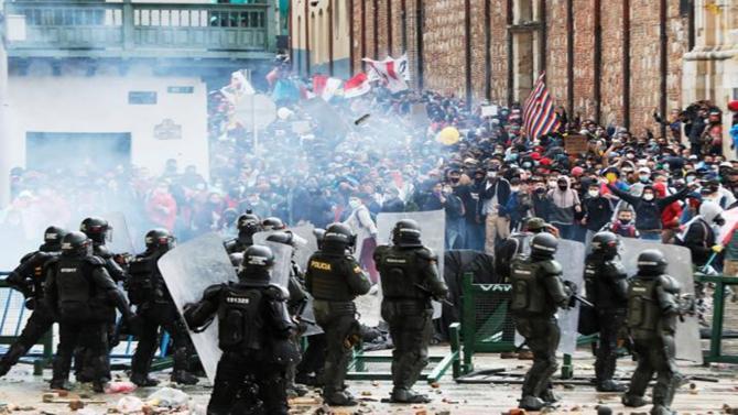 Las escenas impactantes que llegan desde las ciudades colombianas le dan la razón al representante de los futbolistas. Los enfrentamientos entre las fuerzas policiales y los manifestantes son constantes incluso durante las noches, en medio de una 3ra. ola de contagios. Vehículos blindados y helicópteros dispersando a la multitud con gases lacrimógenos y detonaciones de armas son imágenes que recorren el mundo.