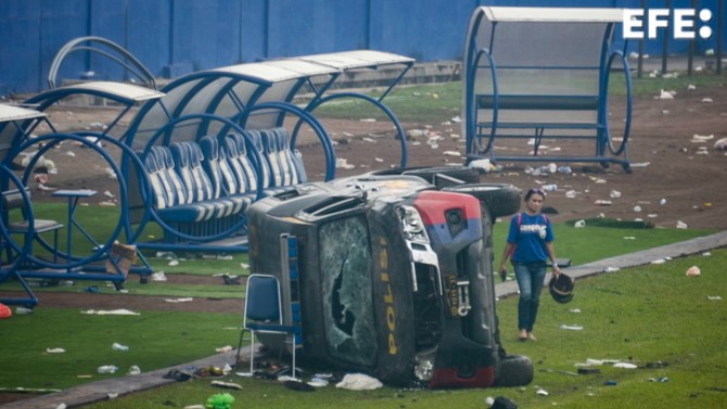 La tragedia ocurrió el sábado por la noche después de que miles de aficionados del Arema irrumpieran en el campo del estadio tras una derrota 2-3 ante el Persebaya Surabaya y se enfrentaran a la policía, que provocó una estampida al disparar gases lacrimógenos.