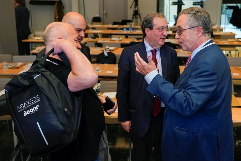 De izquierda a derecha, Pepe Gutiérrez, Miguel Ángel Vaquero, Raúl Porras y José Luis Pérez TriviñoRaúl Porras, que reemplaza a Fernando Molinero como subdirector de régimen jurídico del CSD, excusó al director general Albert Soler, e hizo referencia a la nueva Ley del Deporte y el trabajo que va a generar en el desarrollo normativa de la futura ley.