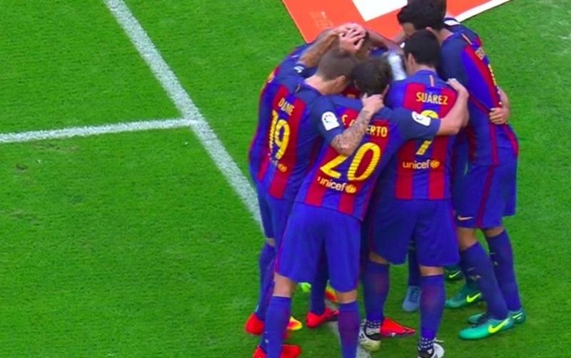 Esta acción se produjo tras el tercer gol del Barcelona, logrado de penalti por Messi en el tiempo de prolongación de un encuentro en el que mostró nueve cartulinas amarillas.