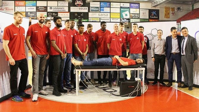 Una vez hechas las presentaciones, los asistentes pudieron comprobar de primera mano y directamente de los especialistas el funcionamiento del material de Neas Global. Por parte de la plantilla de la ICL Manresa, fue el base Lluís Costa, animado por sus compañeros, quién probó por primera vez uno de los aparatos.
