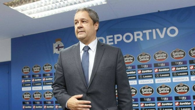 Fernández atendió a los periodistas tras la presentación de las camisetas del Deportivo 2017-18 en un día en que se han desvinculado del club Laureano Sanabria 'Laure' y Oriol Riera.