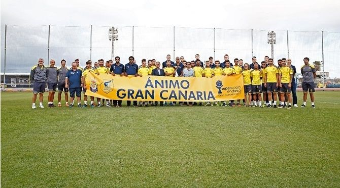 Por otro lado, ambas escuadras, junto con la ACB, quisieron apoyar con una pancarta ofreciendo sus ánimos a Gran Canaria tras los incendios sucedidos en el centro de la isla.