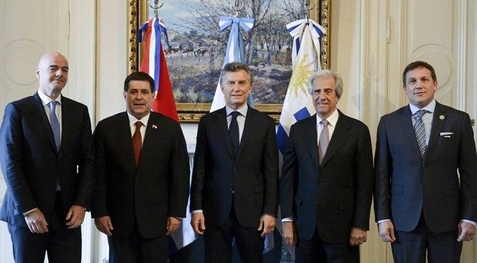 El presidente argentino, Mauricio Macri, recibió a inicios de octubre en Buenos Aires a su colega paraguayo, Horacio Cartes, y al uruguayo, Tabaré Vázquez, junto con el presidente de la FIFA, Gianni Infantino, para presentar la candidatura conjunta.