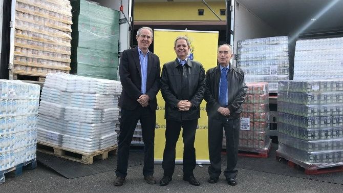 La UD Las Palmas ha entregado 20.000 kilos de comida destinados a las familias más necesitadas, que serán distribuidos por Cáritas y el Banco de Alimentos, en un acto solidario llevado a cabo este jueves en el exterior de la grada de tribuna del Estadio de Gran Canaria.