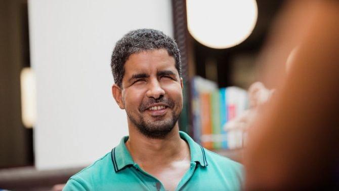 "Tengo una vida muy afortunada. Creo que he hecho casi siempre lo que he querido o lo que me he propuesto y eso ayuda a darle color a la vida", comienza Enhamed al principio de una charla en la que, echando la vista atrás, recuerda que "mientras veía era una persona bastante inquieta, un niño que tendía a jugar solo porque era muy imaginativo, pero era inquieto y curioso". "Cuando me quedé ciego y empezaron a decir que la vida tenía que cambiar, una parte de mí no lo entendía y no lo aceptada. Durante los primeros años estuve desafiando las barreras que me fueron poniendo. Fue una época de entender y aceptar lo que me pedían que hiciera contra mi parte interna que no quería aceptar las reglas", detalla.