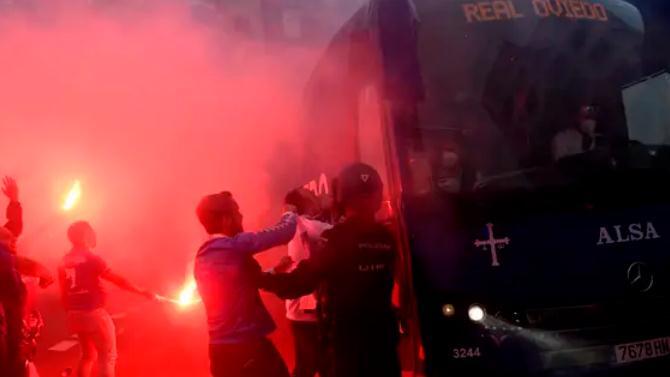 Tras los incidentes registrados en la previa del derbi ante el Real Sporting del pasado sábado, el Real Oviedo decidió manifestar oficialmente su "respaldo incondicional" a la afición azul y condenó "cualquier tipo de comportamiento desagradable, abusivo y violento" que se hubiera producido en las horas previas al choque.