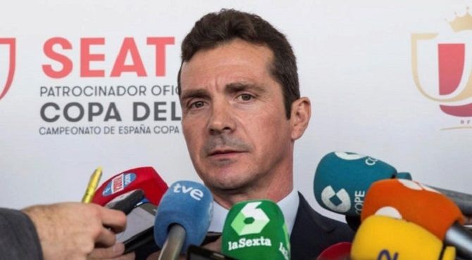El representante azulgrana participó en un comparecencia para anunciar el lugar y fecha de la final en la Ciudad del Fútbol de Las Rozas junto al presidente del Sevilla, Pepe Castro, y el presidente de la Federación Interinsular de Fútbol de Las Palmas, Antonio Suárez, que coordina las finales de torneos organizados por la RFEF.