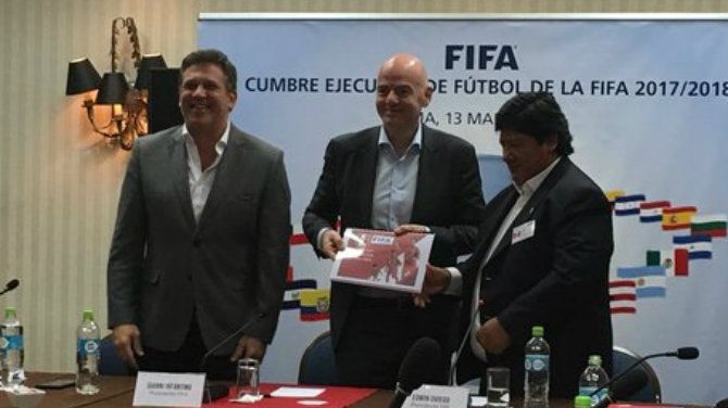 Durante una conferencia de prensa al término de la cumbre, a la que únicamente se invitó a medios locales, el presidente de la FPF, Edwin Oviedo, entregó este martes formalmente la petición al presidente de la FIFA, Gianni Infantino, quien se declaró "muy contento por la iniciativa".