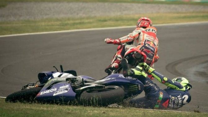 En medio de una carrera "a contrarreloj", Márquez se encontraba en plena remontada en el circuito de Termas de Río Hondo cuando llegó a la altura de "Il Dottore" y adelantó a éste en una maniobra un tanto arriesgada que terminó con el italiano por los suelos tras pisar la hierba.