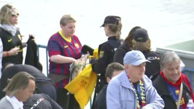 Los agentes de la Policía Nacional intervinieron el sábado a aficionados del FC Barcelona camisetas y prendas amarillas con las que pretendían acceder al estadio donde este equipo se enfrentó al Sevilla FC en la final del torneo de la Copa del Rey.