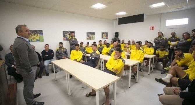 Miguel Ángel Ramírez se reúne con la plantilla de la UD Las Palmas tras el descenso