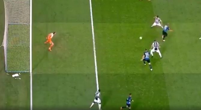 El VAR se estrenó a los trece minutos, cuando el brasileño Douglas Costa marcó el primer gol del partido para adelantar a la Juventus. El atacante recibió un balón de Cuadrado, dejó sentado a Candreva y batió por el palo contrario a Handanovic. Orsato quiso acudir a la tecnología para averiguar si existía fuera de juego de Douglas Costa en la jugada. Un fuera de juego inexistente, puesto que Matuidi no llegó a peinar el balón para darle un pase con la cabeza.