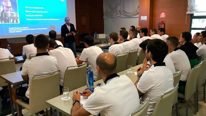 Por primera vez, los árbitros del CTA han recibido formación táctica dentro de las actividades de pretemporada que están teniendo lugar en Valencia. El seleccionador nacional Sub-21, se dirigió a los árbitros de Primera División para destacar los conceptos técnico-tácticos más habituales en la competición de élite. “El juego ha evolucionado mucho desde unos años a esta parte. Os pido que os pongáis durante estas charlas en la piel del entrenador, sé que es imposible que podáis estar pendientes de los detalles de los sistemas durante un partido pero hay una serie de conceptos que explican muchos de los comportamientos que se dan en un terreno de juego”, explicó el técnico Luis de la Fuente a los colegiados, en una formación pionera en España para los colegiados.