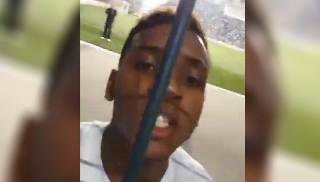 “Conmebol seus filha da puta" (en portugués), gritó enardecido el joven futbolista de 17 años y fue captado por la cámara de un hincha en un video que lo volvió viral tras la divulgación del periodista de Lance Joao Gómez.
