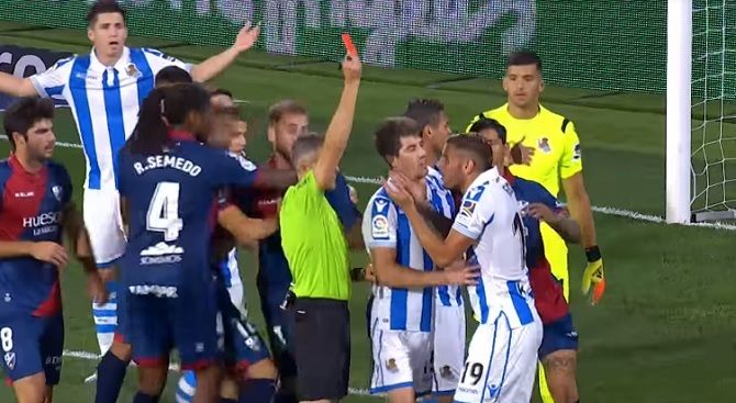 La Real Sociedad regresó del Alcoraz de Huesca con tres puntos más en la clasificación, pero con dos expulsados. Juanmi, por doble tarjeta amarilla, y Theo Hernández se marcharon al vestuario antes de que terminara el partido, aunque por motivos distintos.