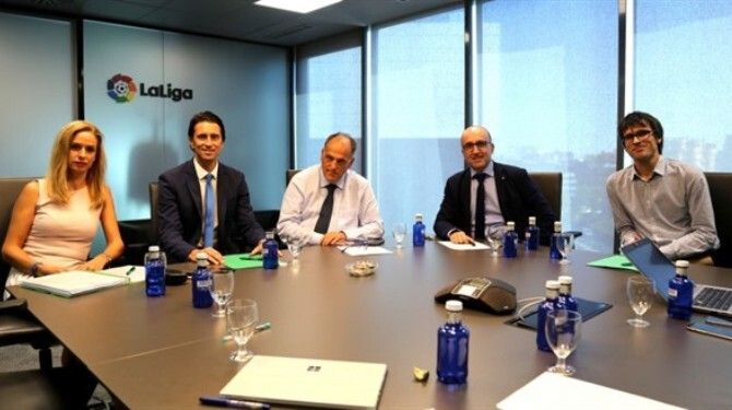 Este miércoles por la tarde tuvo lugar la quinta reunión de la Comisión Negociadora del convenio colectivo en la actividad profesional. Cita donde, como manifestó la propia Liga en una nota informativa, volvió a ausentarse la AFE, uno de los dos sindicatos existentes a día de hoy junto a futbolistas ON. Reunión que estuvo presidida por el propio presidente de la Liga, Javier Tebas.