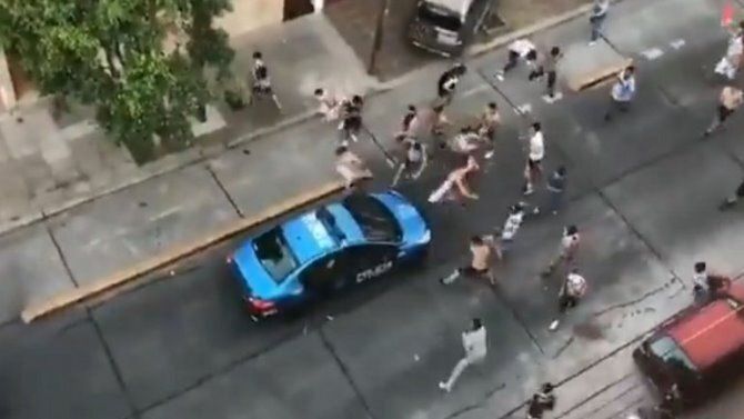 Barras de un club del ascenso de Argentina se enfrentan con la policía