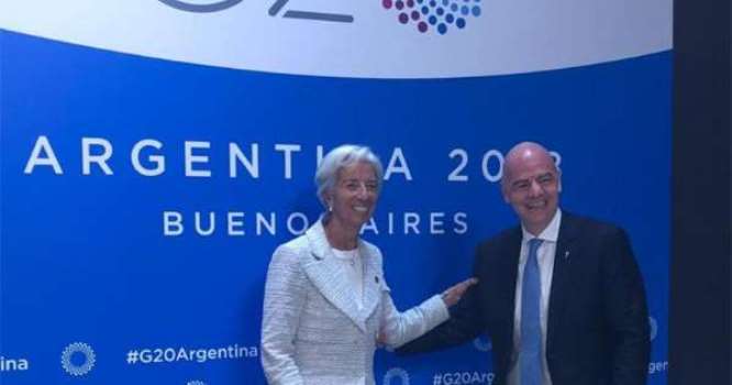 Christine Lagarde, la directora gerente del Fondo Monetario Internacional y Gianni Infantino, presidente de la FIFA, se mostraron sonrientes en uno de los tantos eventos de la reunión cumbre del G20 en Buenos Aires según publica Infobae.com. Ambos mantienen una buena relación con la Argentina.