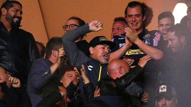 Al término del partido, Maradona, quien por una sanción tuvo que seguir el partido desde un palco, reaccionó airadamente a los insultos de hinchas del equipo local.