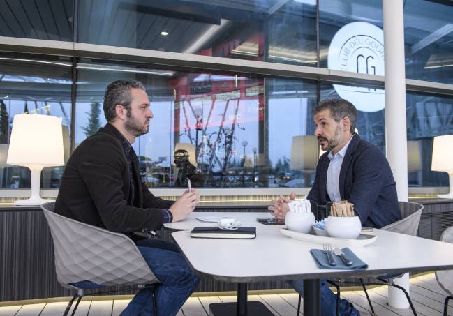 FUTBOL 18/19Alfredo Matilla, periodista de As (izquierda), entrevista al presidente de ProLiga, David Jiménez (derecha). JUAN AGUADO (DIARIO AS)
