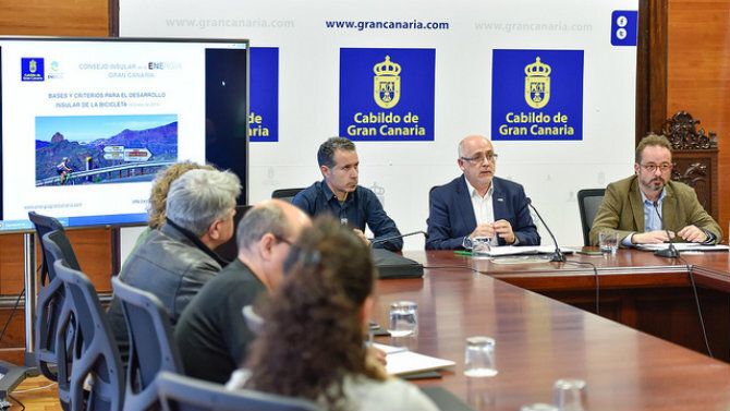 El presidente del Cabildo, Antonio Morales, presentó el documento de Bases y Criterios para el Desarrollo Insular de la Bicicleta en Gran Canaria  junto al consejero de Energía, Raúl García Brink, y el experto ingeniero autor de la estrategia, el reconocido Manuel Calvo, quien aseguró que “la potencia de esta orografía es increíble, nada que envidiar a los puertos de los Pirineos ni los Alpes”.