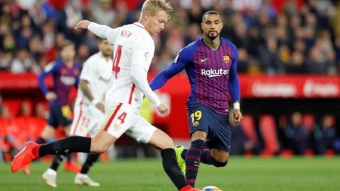 Kevin Prince Boateng debutó el miércoles en el partido de Copa con el Barcelona en el Sánchez Pizjuán sin ficha pero con una autorización de LaLiga.