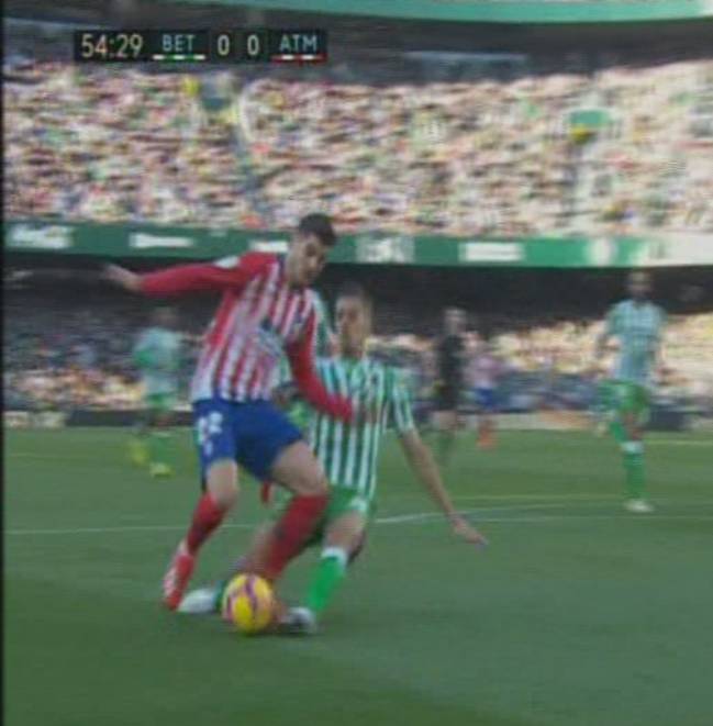 La polémica está servida en el Betis-Atlético. Medié Jiménez no consideró penalti la entrada de Feddal a Morata. En el minuto 53 cuando el flamante fichaje rojiblanco se preparaba para disparar a puerta y hacer el que podía ser el primer gol del partido, el marroquí realizó una entrada dentro del área derribando a Álvaro Morata. El colegiado no decretó penalti y señaló córner. En la jugada, el defensa del Betis toca balón, pero previamente golpea en la pierna izquierda del delantero.