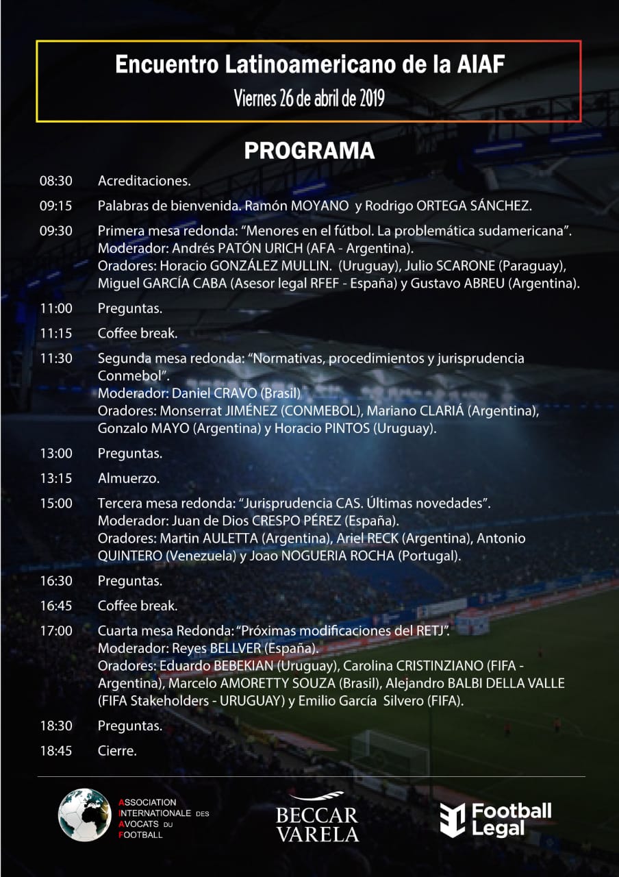 Además de Beccar Varela, colaboran en la organización la AIAF (Association Internationale Advocats du Football) y Football Legal.