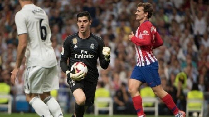 En su primera visita al Wanda Metropolitano para enfrentarse al que fue su club, el meta belga, que tuvo un recibimiento muy hostil por la hinchada rojiblanca, se mostró eufórico con cada ventaja que adquiría el Real Madrid.