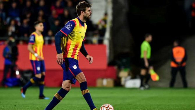 Su gesto fue lo más llamativo en un duelo que se disputó en el estadio de Montilivi, en Girona, ante 12.671 espectadores y que tuvo una gran presencia de símbolos y mensajes independentistas.