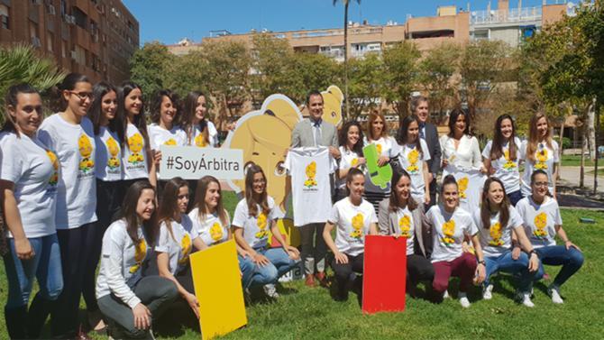 Con el lema, Soy Arbitra, la Federación de Fútbol de la Región de Murcia ha lanzado una campaña arbitral pionera en España dirigida a mujeres y que se ha presentado esta mañana en la sede de la Territorial murciana en un acto al que ha asistido unas veinte colegiadas de toda la Región y el propio presidente del Comité Técnico de Árbitros, Carlos Velasco Carballo.