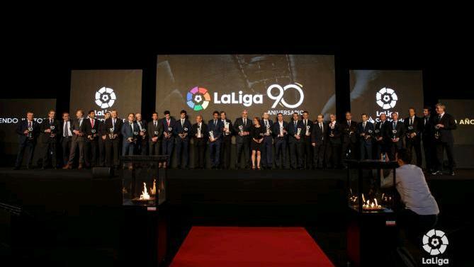 LaLiga celebró este martes en el RCDE Stadium su 90 aniversario, un acto que contó con la presencia de una gran multitud de personalidades del mundo de fútbol y que repartió numerosos galardones entre los asistentes.