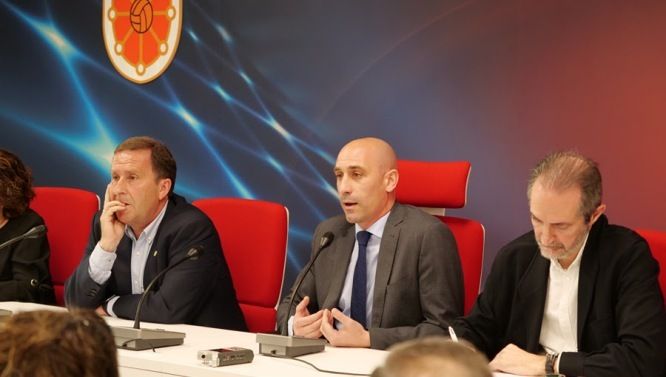 El presidente de la RFEF ha explicado ante la Asamblea de la Federación Navarra de Fútbol las subvenciones finalistas que el organismo rector quiere otorgar a las diferentes federaciones territoriales