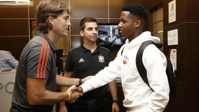 El delantero del FC Barcelona Ansu Fati (16 años), convocado por primera vez con la selección española para acudir a la lista de la Sub-21, explicó sus sensaciones y cómo se enteró en declaraciones difundidas por la propia selección española de fútbol.