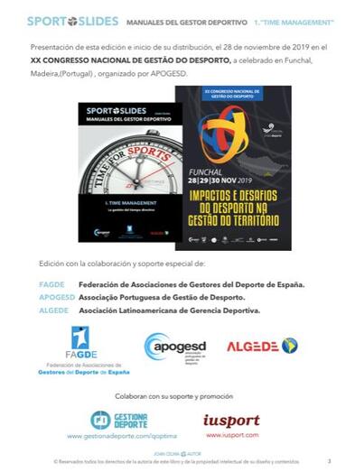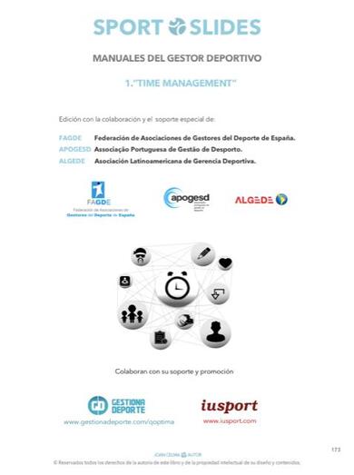 Joan Celma, especialista reconocido en gestión deportiva, presenta la nueva obra TIME MANAGEMENT "La gestión del tiempo directivo", edición ampliada con 174 páginas a todo color y nº 1 de la colección SPORT SLIDES MANUALES DEL GESTOR DEPORTIVO, con el soporte de las asociaciones de gestores deportivos de España FAGDE, de Portugal APOGESD y de Latinoamérica ALGEDE
