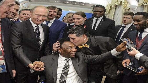 El mandamás ruso aceptó el convite en tono amigable. Así fue que el italiano Fabio Cannavaro, el español Carles Puyol, el brasileño Ronaldo, Pelé y Maradona, entre otras estrellas, posaron junto a él para una serie de fotografías que recorrieron el planeta.