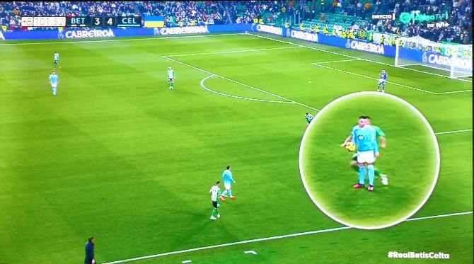 En el minuto 95 del partido Betis-Celta celebrado el pasado sábado se produjo un enganchón cuando Iago Aspas sujetó la pelota, lo que motivó que Luiz Felipe fuera con vehemencia hacia el capitán celeste a recuperarla, quien, de espaldas, no vio venir a su rival.