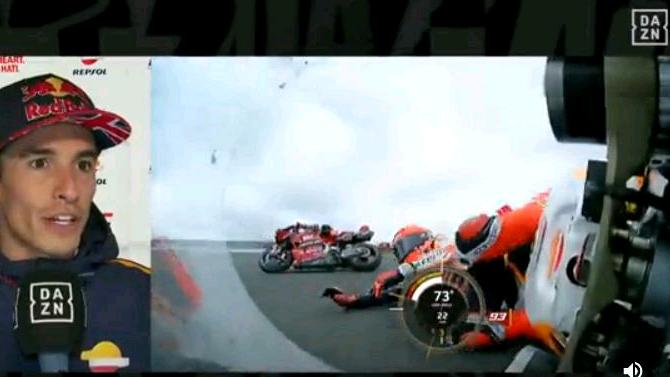 F: @DAZN_ESEspargaró, en un determinado momento de la segunda tanda de entrenamientos, en la curva cuatro, rodó excesivamente lento y con esa actitud molestó a Márquez.