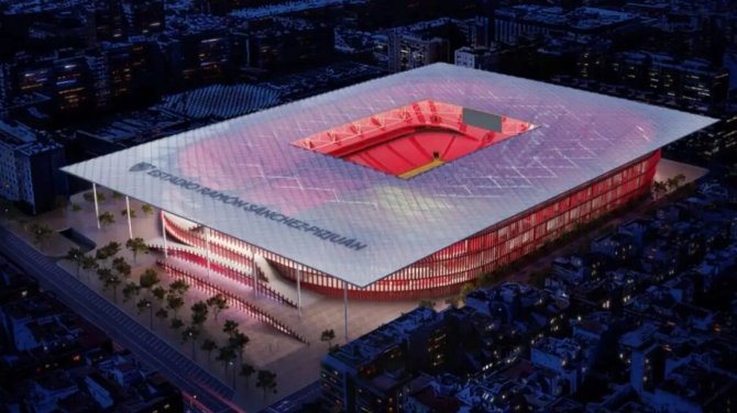 El nuevo estadio Ramón Sánchez-Pizjuán de Sevilla contará con un aforo de 55.000 espectadores, supondrá la demolición del actual y su construcción en la misma ubicación con una inversión de entre 300 y 350 millones de euros, y sus obras está previsto que se prolonguen por dos años, entre julio de 2026 y julio de 2028.