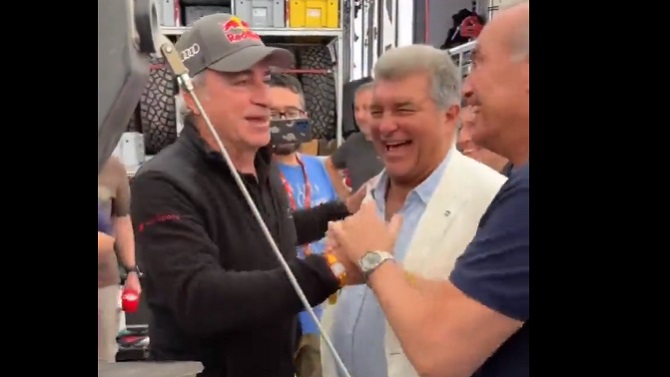 "Es un buen detalle venir a visitarme y desearme suerte. Yo le he dicho que gane el mejor, pero si puede ser que gane el Madrid", incidió Sainz, que comentó en una entrevista a EFE cómo fue la visita de Laporta apenas unos minutos antes.