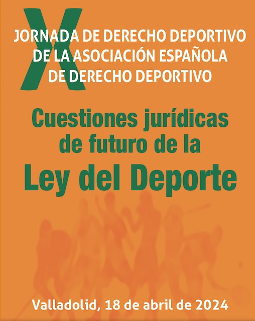La Asociación Española de Derecho Deportivo (AEDD) coorganiza con AFEDECYL (Asociación de Federaciones Deportivas de Castilla y León) la X Jornada de Derecho Deportivo «Cuestiones jurídicas de futuro de la Ley del Deporte» el próximo 18 de abril en el Salón de Actos del Chalet Social de la Real Sociedad Hípica de Valladolid.