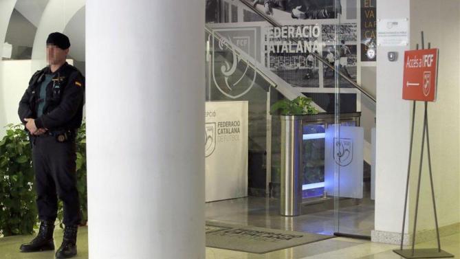 El pasado 5 de marzo, 30 unidades de la Policía de la Generalitat de Cataluña, junto con la jueza y secretaria judicial del Juzgado de Instrucción número 2 de Sabadell se presentaron en la sede de Barcelona de la Federación Catalana de Fútbol para efectuar su registro durante 12 horas seguidas y se incautaron diversos dispositivos móviles de directivos y ejecutivos, entre los cuales figuraban Joan Soteras y José Miguel Calle y diversos trabajadores. Los presuntos delitos cometidos son administración desleal (art. 252 CP, castigados con pena máxima de prisión de hasta 6 años y multa de 6 a 12 meses), falsedad en documento público (art. 392 CP, pena de prisión de 6 meses a 3 años y multa de 6 a 12 meses) y falsedad en documento privado (art. 395 CP, pena de prisión de 6 meses a 2 años).