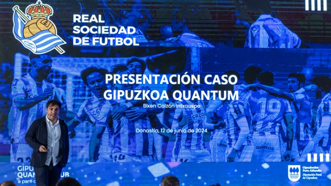 El responsable de la Unidad de Evaluación y Dato de la Real Sociedad, Binxen Calzón, ha explicado cómo aplica el club txuriurdin la cuántica durante su participación en una jornada en la que la Diputación de Gipuzkoa ha presentado la estrategia 'Gipuzkoa Quantum Hub' que tiene por objetivo hacer del territorio un referente internacional en este ámbito en 2027.