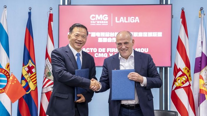 La firma del acuerdo tuvo lugar en la capital de China, en una ceremonia a la que asistieron Javier Tebas, presidente de LaLiga, y Shen Haixiong, vicepresidente del Departamento de Publicidad del Partido Comunista de China (PCCh) y presidente de CMG.