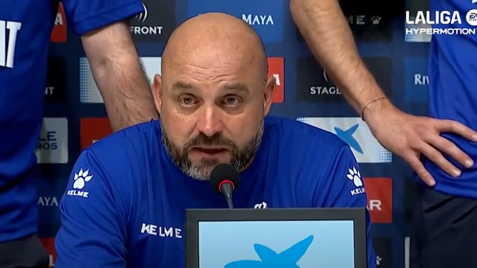 "Si digo lo que pienso a lo mejor no vuelvo a entrenar más, pero lo ha visto todo el mundo. Son antecedentes que vienen de hace dos años y estamos muy jodidos hoy. Hemos competido de tú a tú al Mallorca y nos vamos con cara de imbéciles", explicó en la rueda de prensa posterior al partido.
