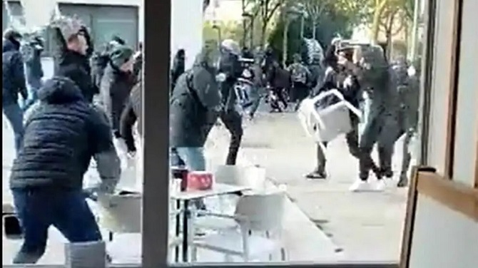 El fiscal explica en su escrito que todos menos uno se taparon las caras con pasamontañas, bufandas o camisetas para no ser identificados y tiraron contenedores y vallas, además de una barricada que impedía el paso de vehículos.