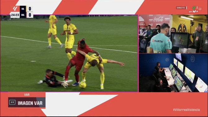 En La Cerámica, las dos intervenciones del VAR fueron justificadas. Carlos del Cerro Grande avisó primero por un penalti claro: Luiz Júnior salió mal, no tocó balón en ningún momento y derribó a Sadiq Umar. Gil Manzano no lo apreció en directo.