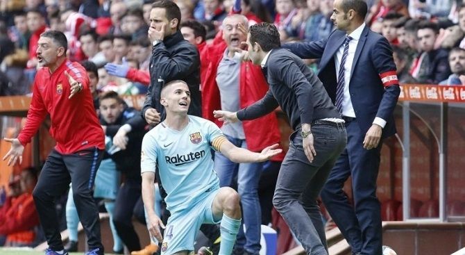 El entrenador del Sporting de Gijón Rubén Baraja ha sido sancionado esta tarde por el Comité de Competición con cuatro partidos de suspensión y una multa de 3.005€. El sábado por la tarde el entrenador vallisoletano protagonizó la acción anecdótica del partido entre el Sporting de Gijón y el Barça B al agarrar al defensa azulgrana Sergi Palencia para evitar que ejecutara rápidamente un saque de banda. El árbitro del partido, Eduardo Prieto Iglesias, no dudó en acudir a la banda para expulsar al entrenador rojiblanco.